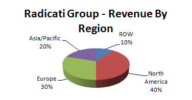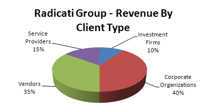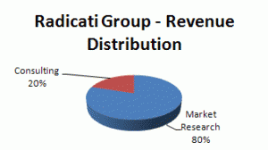 The Radicati Group derives the bulk of its revenues from market research services (in the form of reports, subscriptions, teleconferences, and our monthly newsletter) which make up 80% of total company revenue. The remaining 20% of revenues are derived from custom consulting projects.